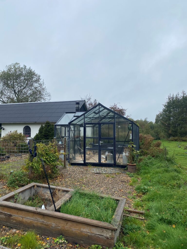 Hele ejendommen opvarmes med en stor luft til vand varmepumpe mrk. Daikin.