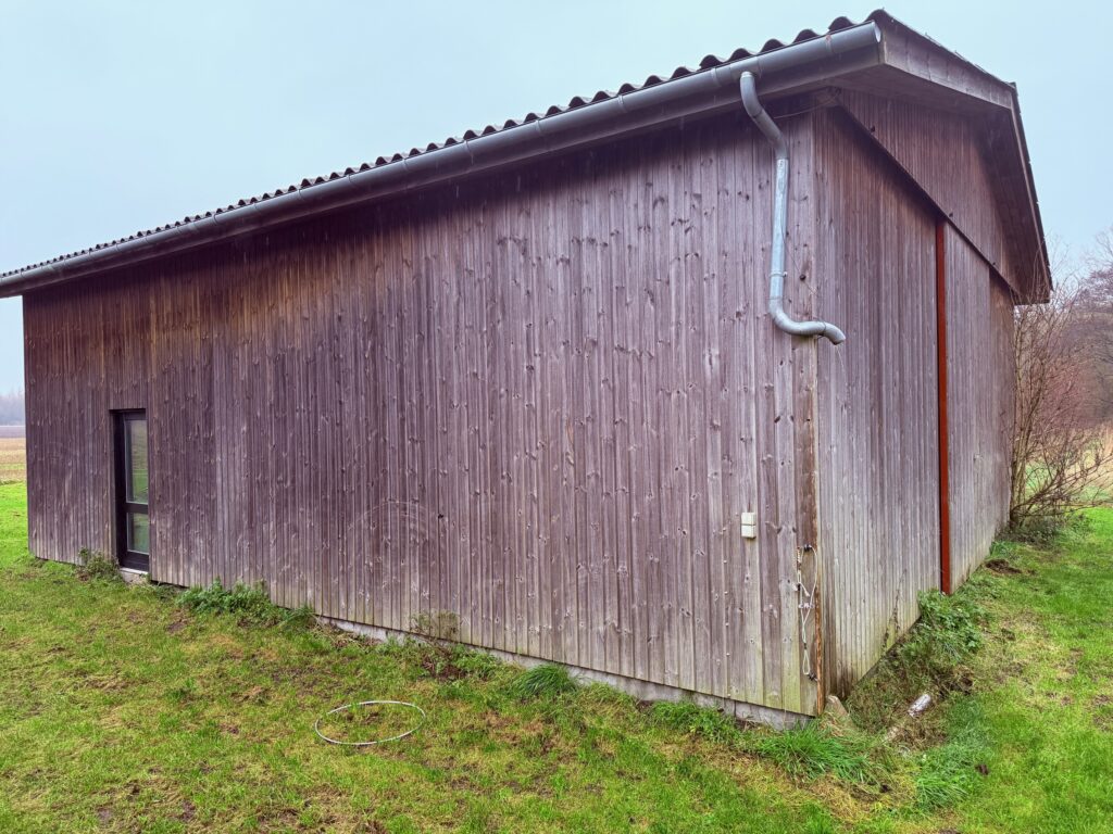 Udhus/hestestald på 115 m², opført i 2014 i træ og med tagdækning af fibercement uden asbest.