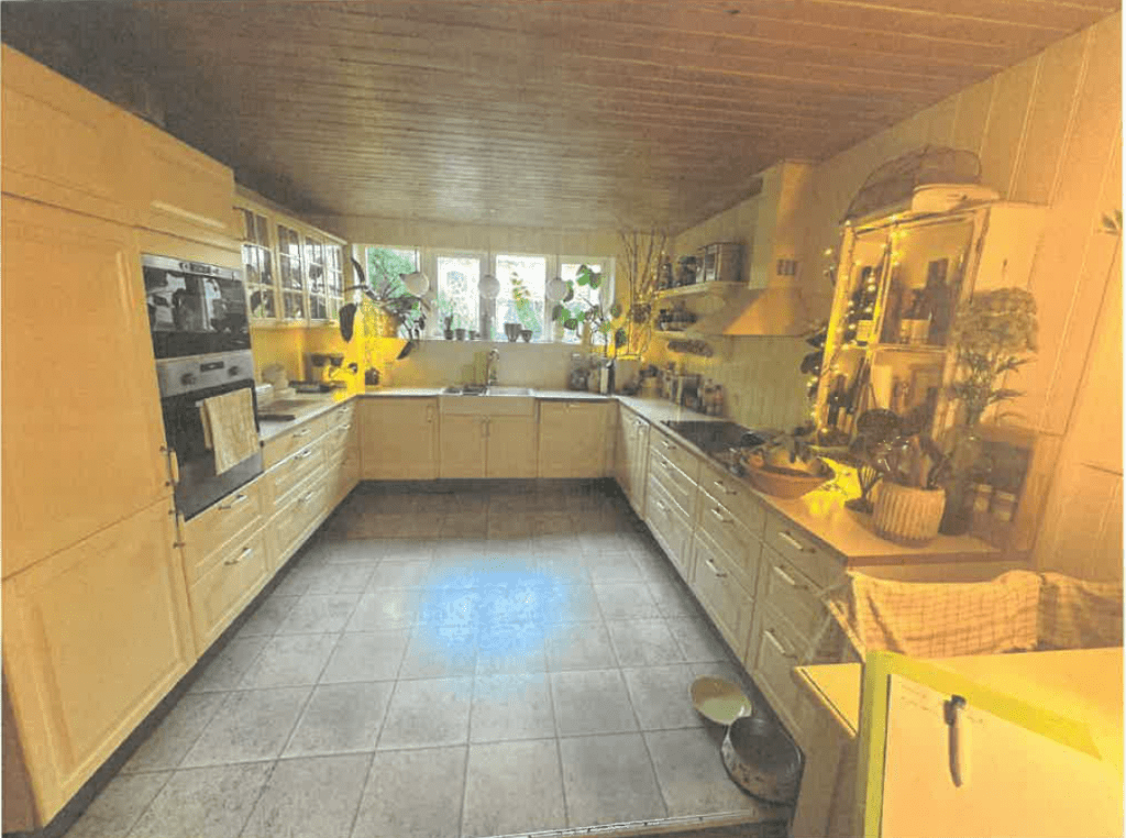 Hårde hvidevarer – herunder komfur, køleskab mv. – er af ældre dato, men funktionsdygtige. Dog må en udskiftning heraf forventes at skulle ske snarest efter overtagelse.