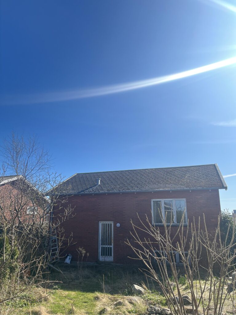 På ejendommen forefindes en container med diverse materialer samt materialer ved siden af containeren. Der ses ligeledes et drivhus på ejendommen.