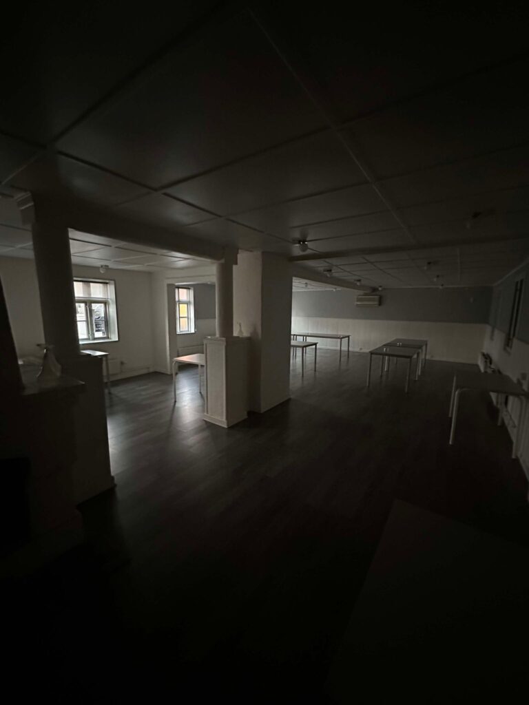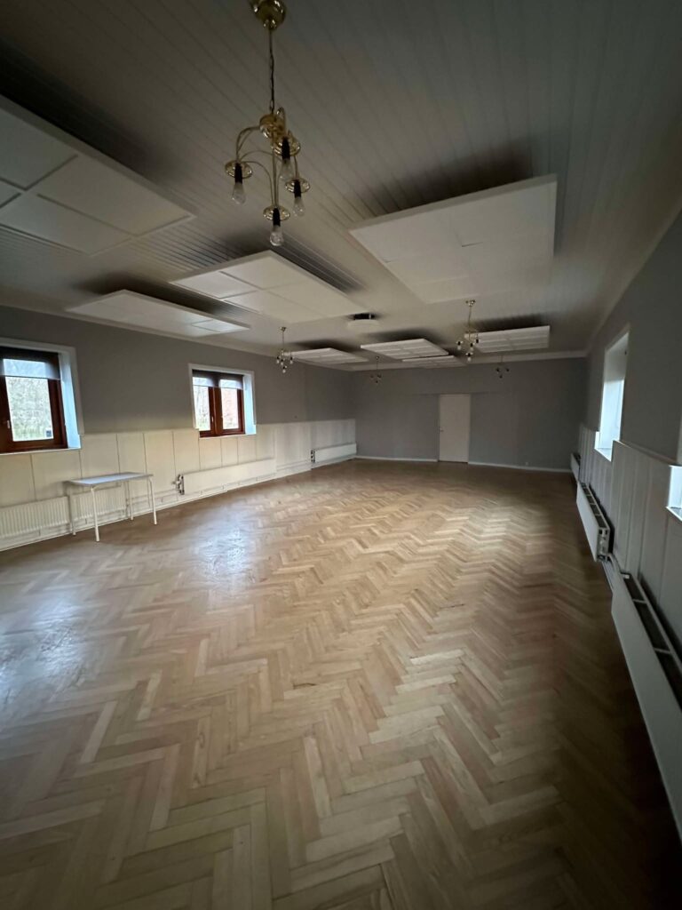 Erhvervsdelen i stueetagen har i nyere tid været anvendt som selskabs- og krolokaler. En mindre bar er indrettet ved indgangen, herunder garderobe og toiletfaciliteter. Selskabslokaler af forskellige størrelser. Stort køkken med køle- og frysefaciliteter, herunder adgang til lagerplads i kælderen. Bag det store selskabslokale er der adgang til det uopvarmede lagerlokale.