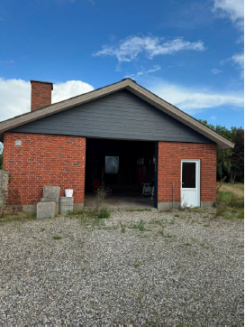 På grunden forefindes garage på 94 m2 opført i 1977 ligeledes i røde mursten. Taget er ifølge BBR i fibercement.
