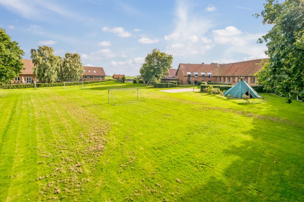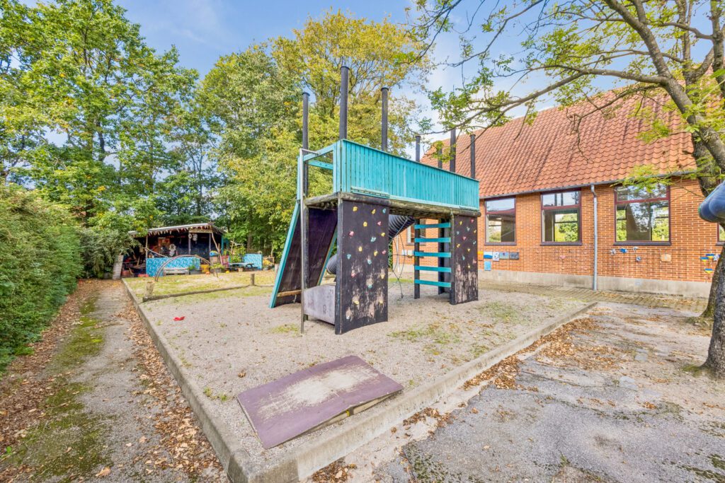 Udenomsarealer omfatter asfalteret skolegård, legeplads, tipi, diverse legehuse, fodboldbane.