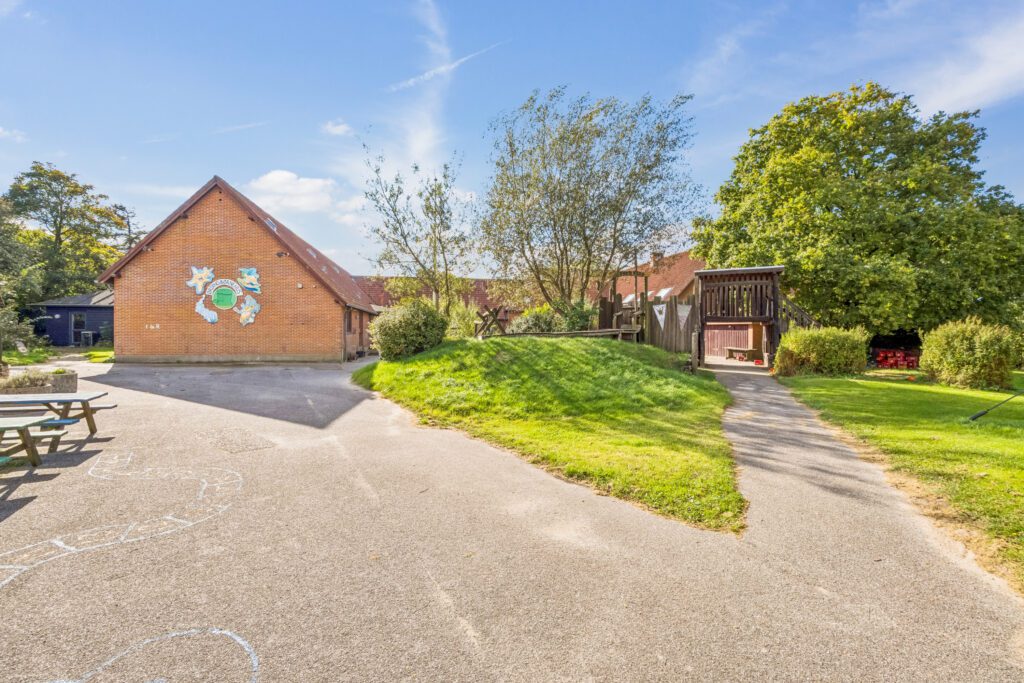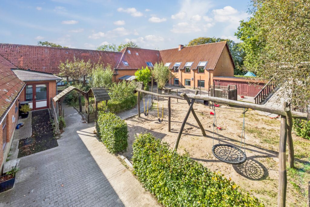 Omfatter skolens primære bygningsmasse indeholdende tidligere skole og børnehus samt et grundareal på 11133 kvm.