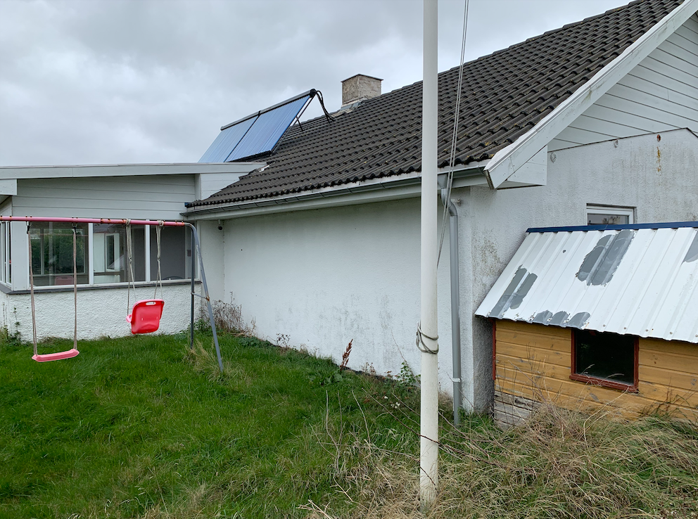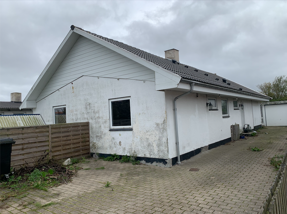 Hvidpudset villa med nyere tegltag, opført i 1957, ombygget i 2001, med et ifølge BBR samlet boligareal på 137 m2. Ejendommen er indrettet med bryggers, køkken med hvide elementer med åben forbindelse til stue m/brændeovn og slidte trægulve, badeværelse, soveværelse samt 2 værelser. Plastvinduer.
