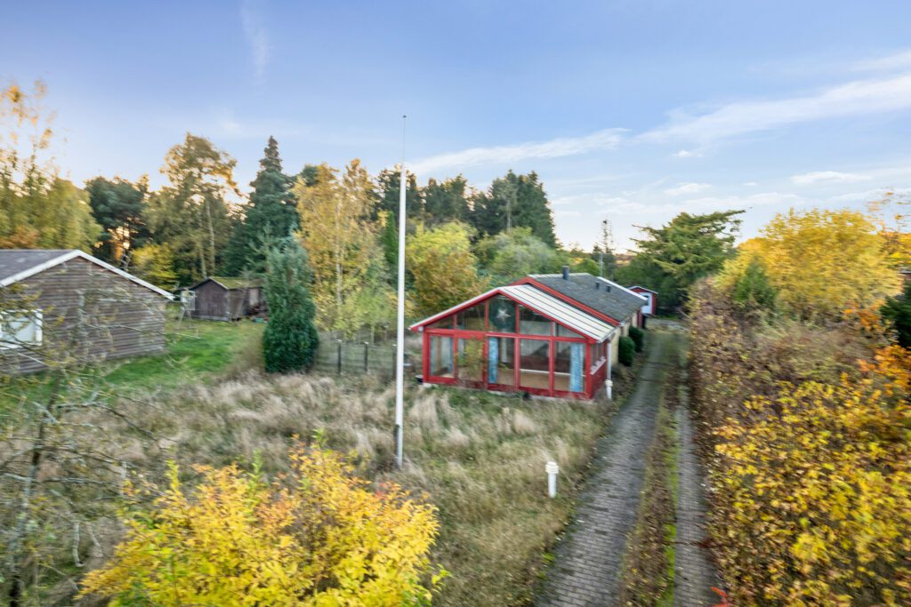 Ejendommen rummer gode muligheder for afslapning – såvel ude som inde. Grunden er ifølge BBR 985 m2 og iflg. BBR er der registreret fire bygninger på grunden. Den primære bygning – selve fritidshuset – er er iflg. BBR registreret med samlet areal på 105 m2 hvoraf 82 m2 er boligareal. Bygningen er indrettet som fritidshus, som indeholder køkken, badeværelse, to værelser samt en stor stue med direkte adgang til en stor udestue. Fra indgangen er der en gang, som fører til bygningens primære rum; den store stue samt køkken, som delvist er indrettet som køkken/alrum. Gangen giver ligeledes adgang til badeværelse, bryggers og husets to værelser. Fra stuen er der adgang til husets store udestue, hvorfra der er adgang til både ejendommens flisebelagte terrasse og græsplæne. Bygningen er er opført i mursten og med tag af fibercement herunder asbest. Stuen rummer brændeovn (årstal ukendt) og varmepumpe, det er uvist om disse er funktionsdygtige.