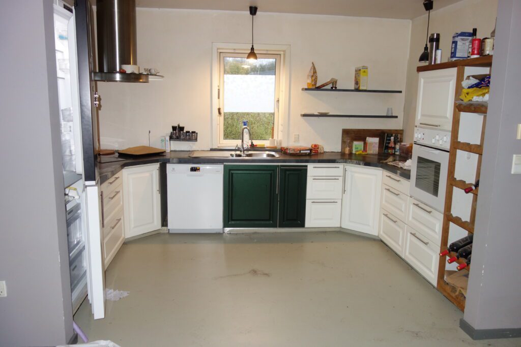 Ved besigtigelsen forefandtes AEG ovn, Electrolux opvaskemaskine, Whirpool køle/frys, Gram kogeplade samt emhætte.