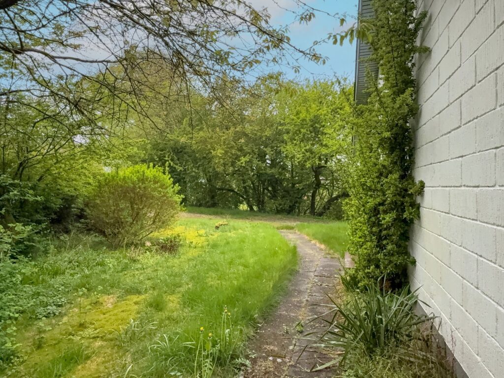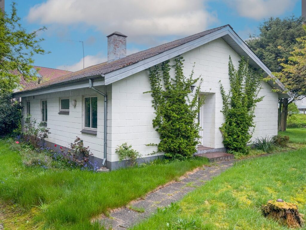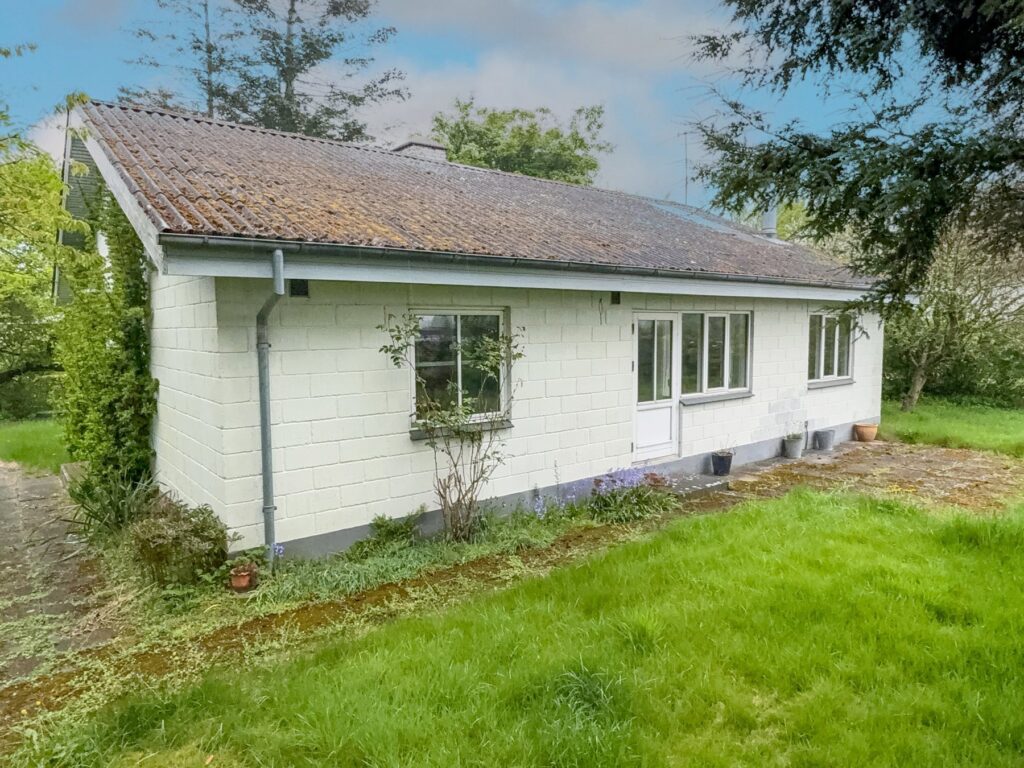 Ældre hus fra 1996 med vægge af letbetonsten og eternittag. Bemærk taget indeholder asbest. Tagrenderne er utætte.