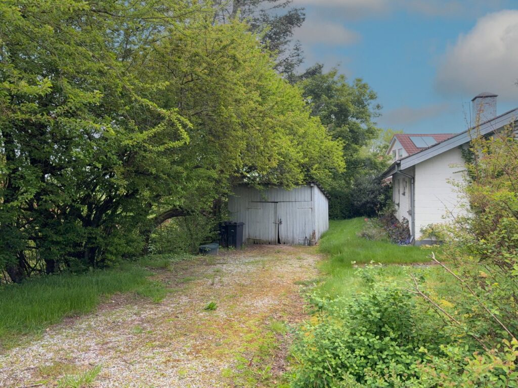 På grunden står en carport med redskabsrum. I carporten er en række haveredskaber og håndværktøj, der forbliver på ejendommen efter salg. Der står videre en overfladetank til olie i carporten. Tanken ses ikke registreret. Jf. ejendomsdatarapport er der tillige en nedgravet olietank. Tanken står anført som sløjfet.