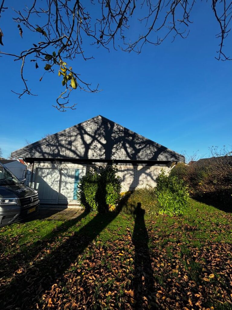 Et selskabslokale med tilhørende udearealer, køkkenfaciliteter samt toiletter.
