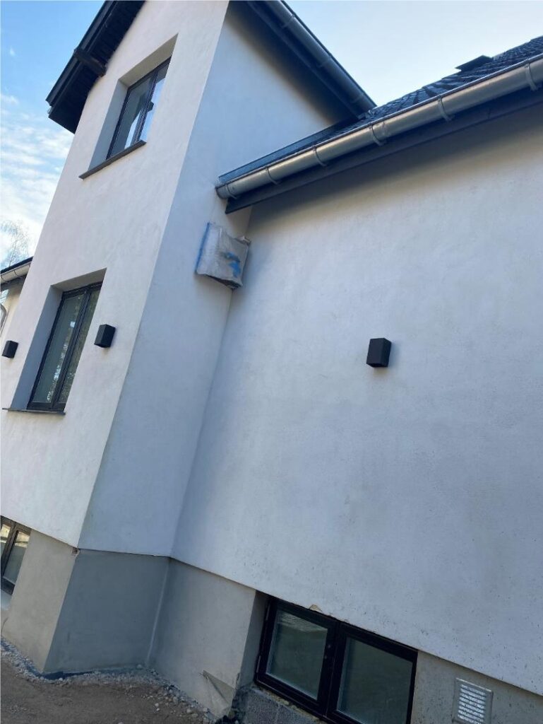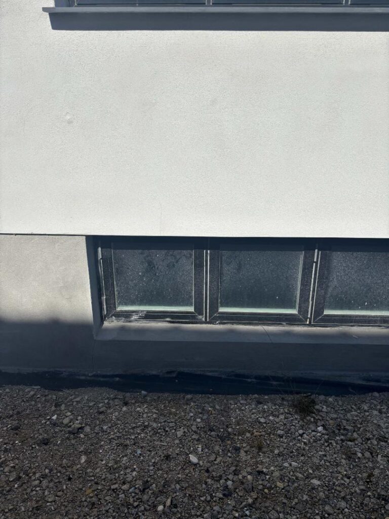 Der er registreret mindre og reparerede revner i det udvendige murværk, særligt over og under vinduer. Sokkelpudsen fremstår flere steder revnet og løs. Det oplyses, at omfangsdrænet er lagt for lavt, hvilket medfører behov for opgravning og etablering af nyt dræn rundt om hele bygningen.