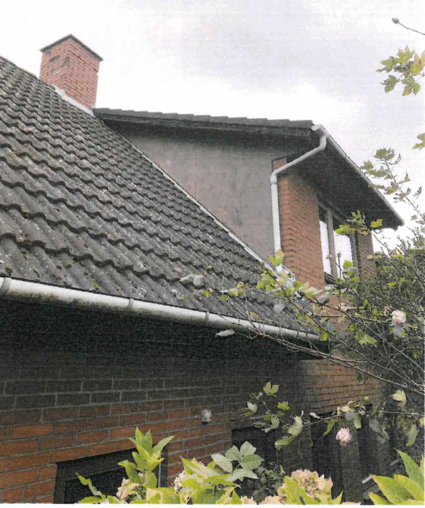 Bygningen er den ene halvdel af et dobbelthus og har et bebygget areal på 127m², er opgivet til at have 170m² i boligareal, idet tagetagens udnyttede areal udgør 43m². Bygningen er opført i mursten. Bygningen blev opført i 1890 og ombygget i 1982. Af BBR fremgår det, at bygningen har et tag bestående af tagpap. Ved besigtigelse kunne det konstateres at det kun gælder for garagen og tilbygningen. Det oprindelige hus har tag af andet materiale.