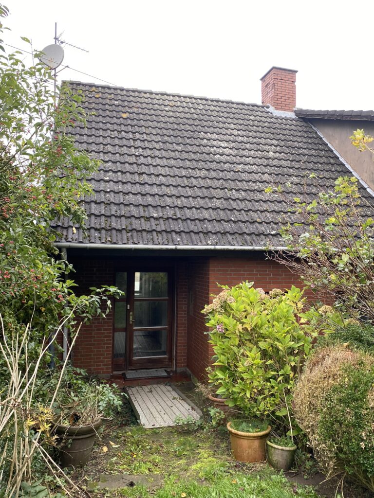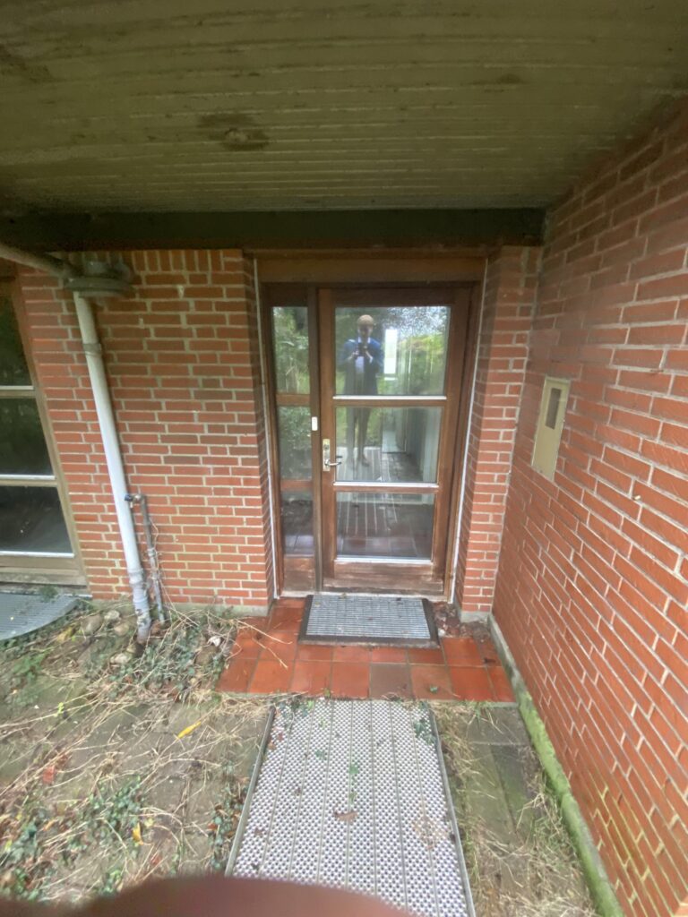 Fra biblioteket er der videre adgang til husets køkken-alrum. Gennem køkkenet er der adgang til en gang, som fører ud til tilbygningen. I bunden af gangen er husets eneste badeværelse. I tilbygningen er der tre værelser og 1 bryggers.