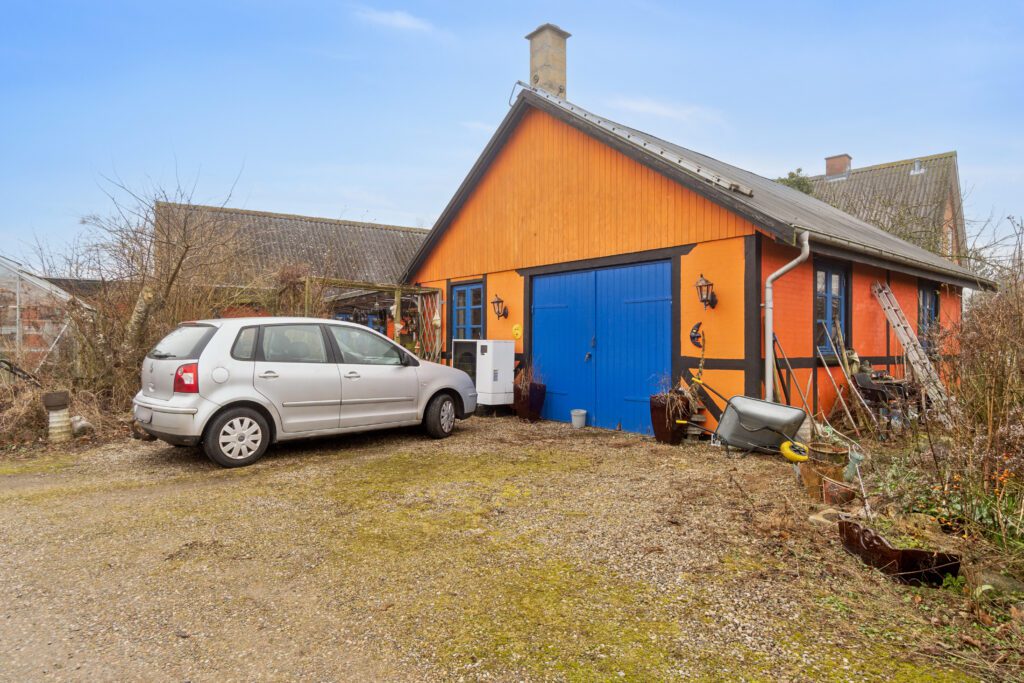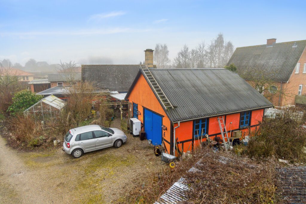 Der er et stuehus med udnyttet tagetage, et udhus/garage, der indeholder 2 rum, hvor det ene har været brugt som systue og det andet er værksted.