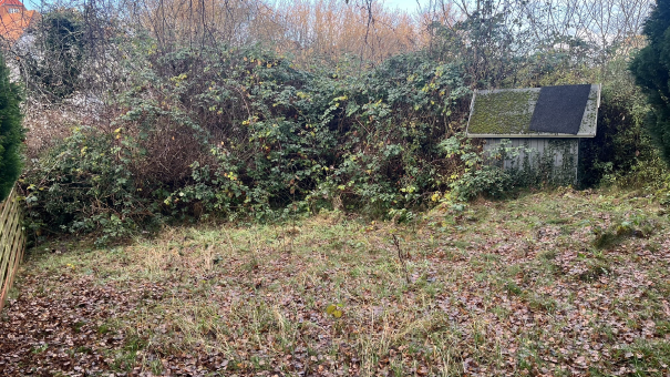 Ejendommen er beliggende med have, som dog er tilgroet.