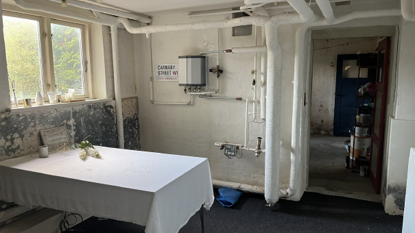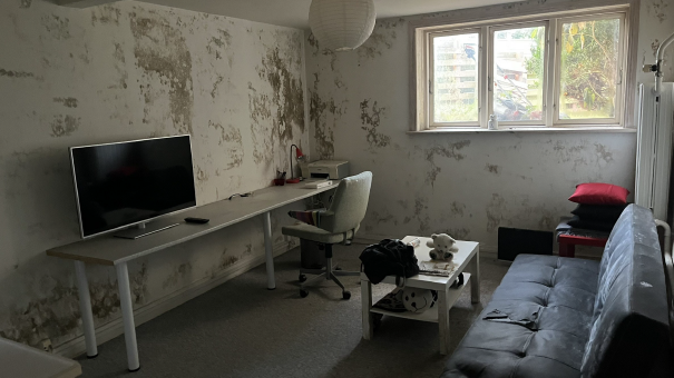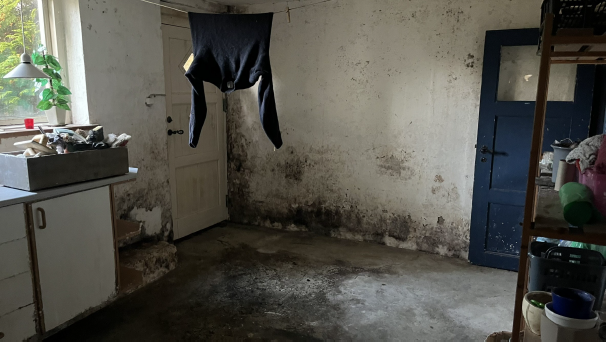 Ejendommen fremstår generelt med omfattende behov for istandsættelse og der ses fugt og skimmelvækst i stueplan og i særdeleshed i kælderen. Ejendommen er delvist møbleret og fremstår med en del løsøre særligt i kælderen.