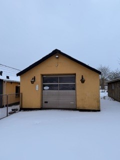 Garage opført i 1988 i letbetonsten og med fibercementtag under asbest. Bebygget areal 51 m², heraf indbygget udhus 10 m².