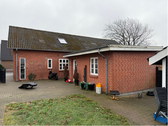 Bygningen er opført i mursten med tagbeklædning af tegl.
