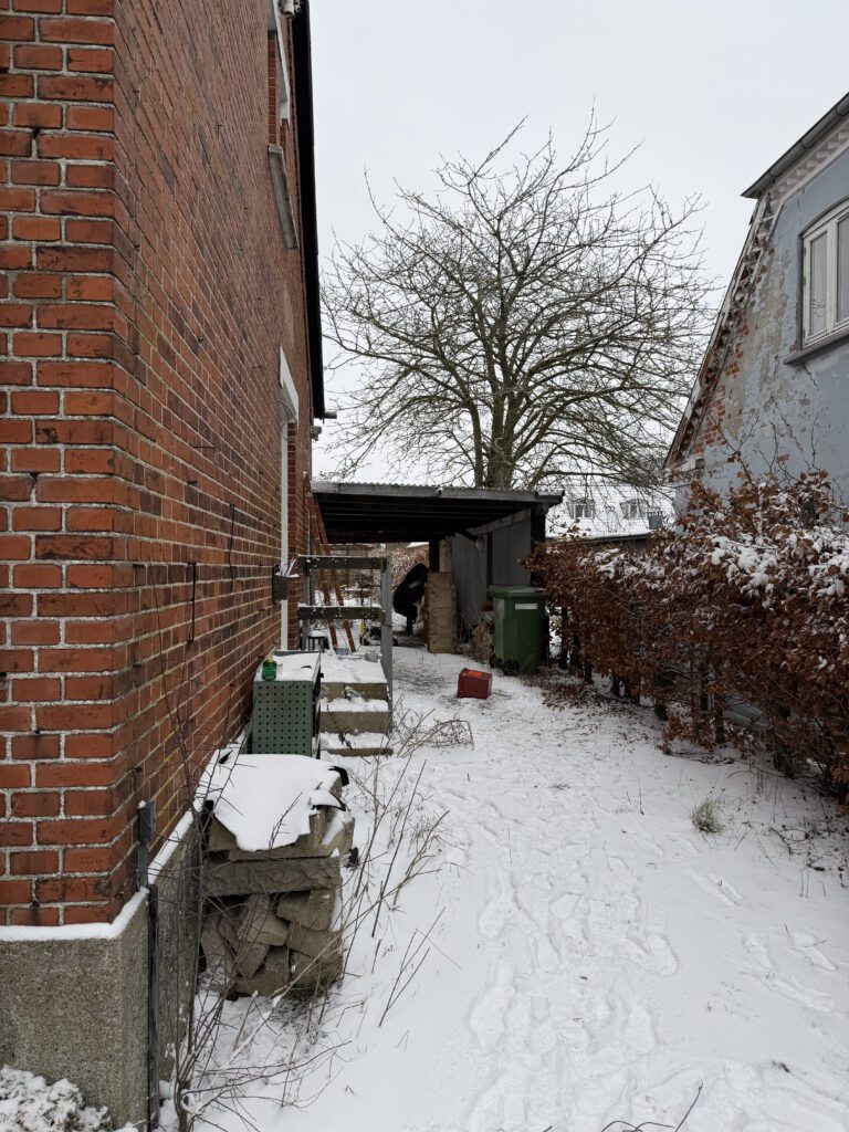 Der er desuden en tilbygning/et skur samt en carport.