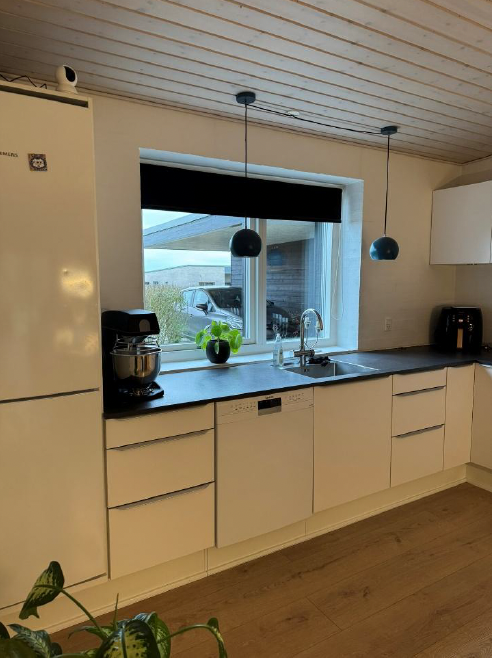 Fra bryggers er der videre adgang til køkken-/alrum og stue, hvorfra der er adgang til husets øvrige rum (2 badeværelser og 4 værelser).