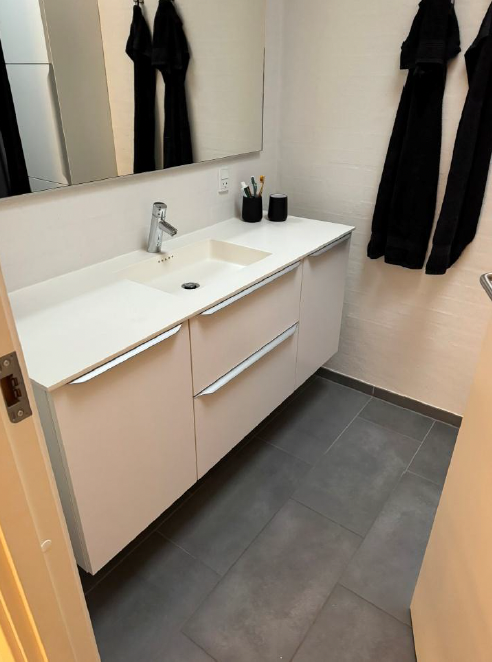 Badeværelserne er begge med hvide elementer og hvid vask/bordplade.