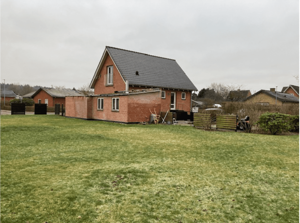 Adgangen til boligen sker via en kort trappe med 7 trin, som fører op til hoveddøren.