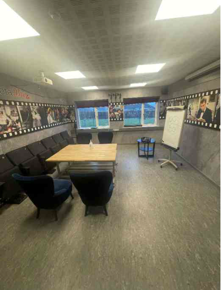 Servicearealerne indeholder industrikøkken, personalerum, printerrum, depotrum, personaleomklædning, hjemmebiograf, frisørsalon og kontorer.