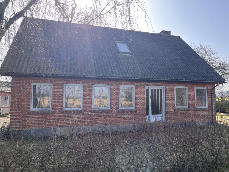 Fritliggende etplans villa i røde mursten indeholdende 4 værelser, stue samt åbent køkken. I køkkenet er der kogeø med emhætte. Ældre kogeplade af mærket Husqvarna, opvaskemaskine mærket Whirlpool. Indbygget ovn. Ældre køleskab mærket Electrolux.