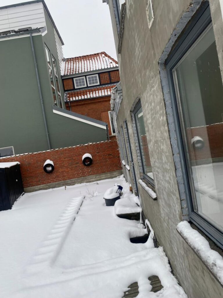 Når du kommer ind ad ejendommens hoveddør, træder du ind i entréen. Herfra er der adgang til et af husets toiletter samt adgang til ejendommens tagetage. Fra entréen er der endvidere adgang til et af ejendommens mange værelser.