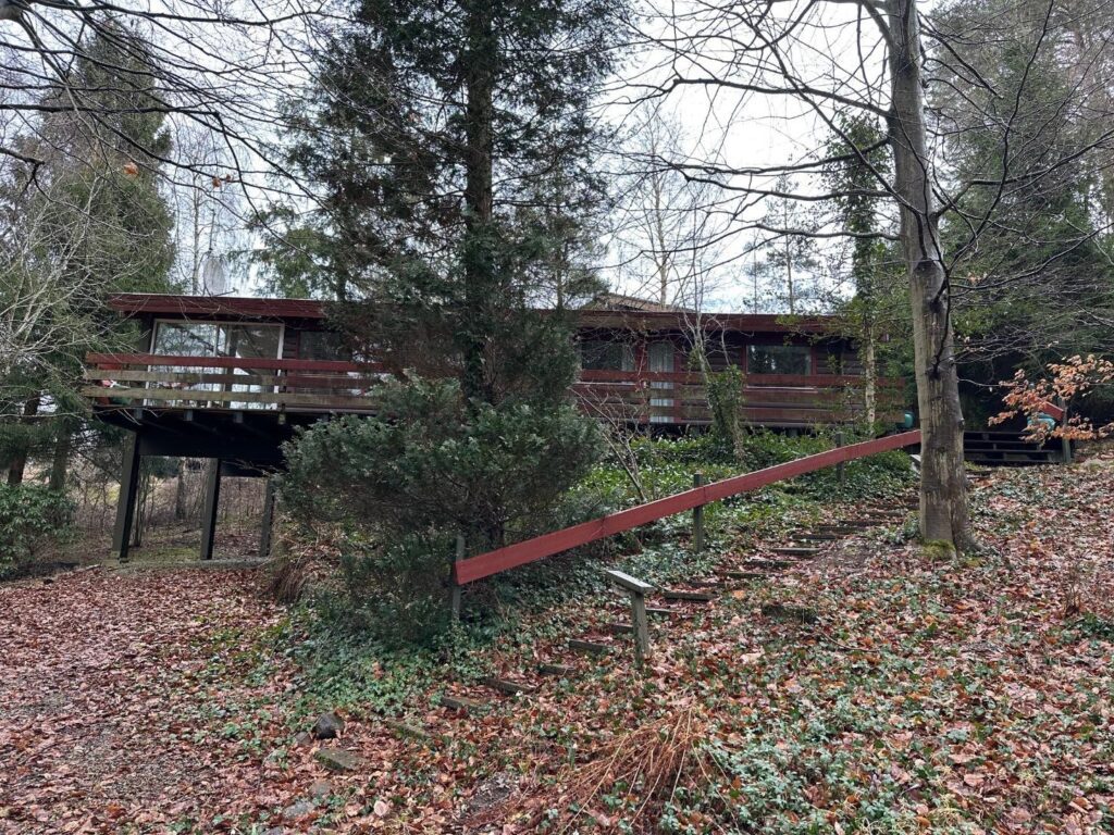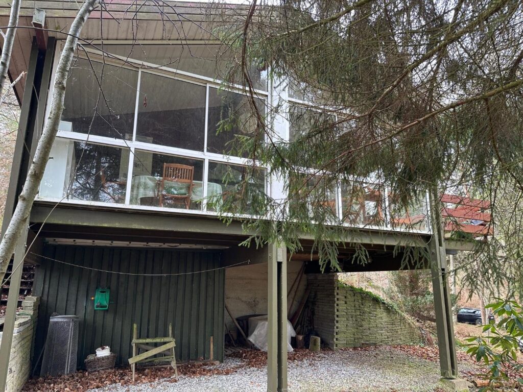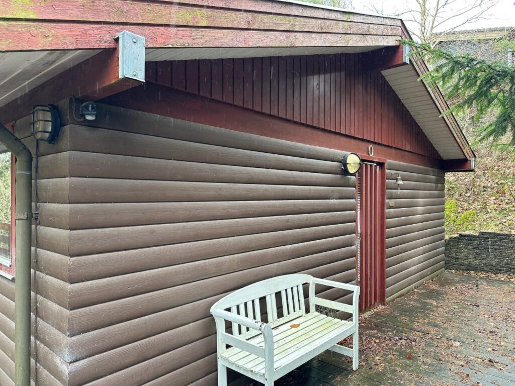 Ejendommen er udvendig opført i træ/træbeklædning med udvendig træ-gang og træ-terrasse.
